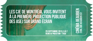 Les vingt Carrefours jeunesse emploi (CJE) de l’Île-de-Montréal ont célébré le lancement des deux premières capsules vidéo, présentant la diversité des services offerts par les agents de sensibilisation à l’entrepreneuriat jeunesse à l’occasion d’un 5@7 qui s'est tenu le 25 septembre 2013 au Cinéma Beaubien.
