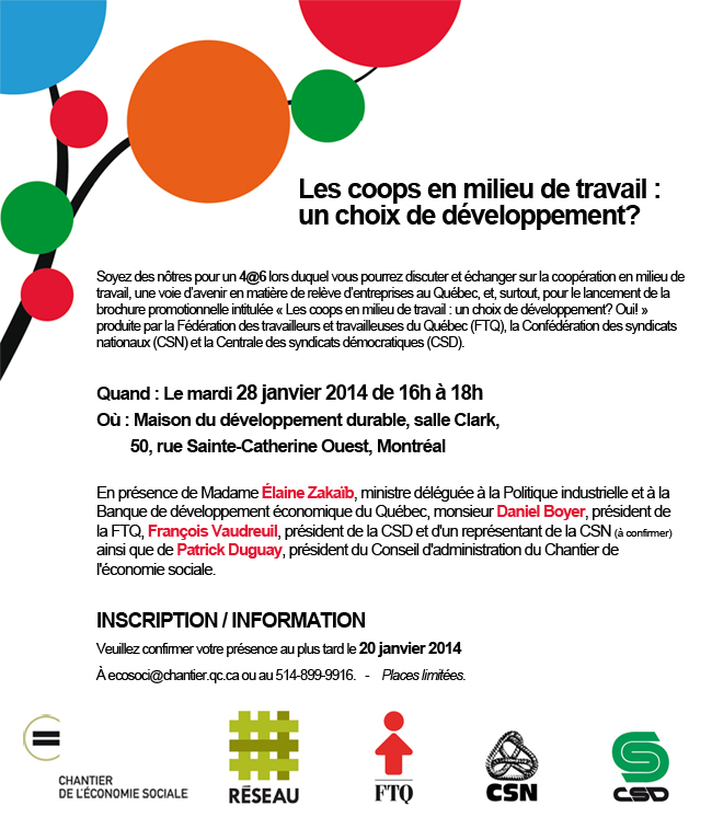 Le 28 janvier prochain, on parle coops en milieu de travail !