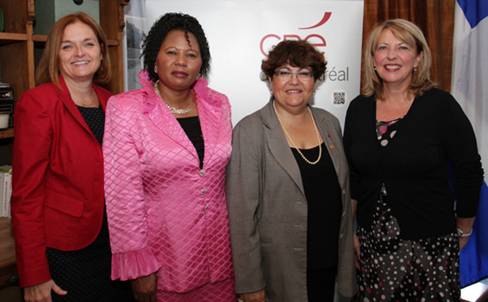 Mme Régine Allende Tshombokongo (directrice générale du Centre d’encadrement pour jeunes femmes immigrantes), Mme Mary Deros (membre du comité exécutif de la CRÉ de Montréal),